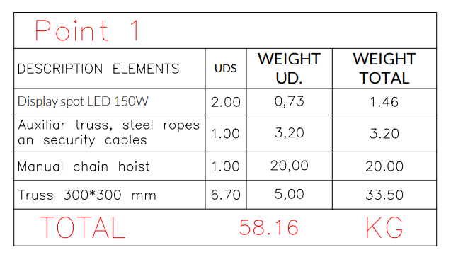 Detailed load per rigging point if the load exceeds the 10kg kg/m².